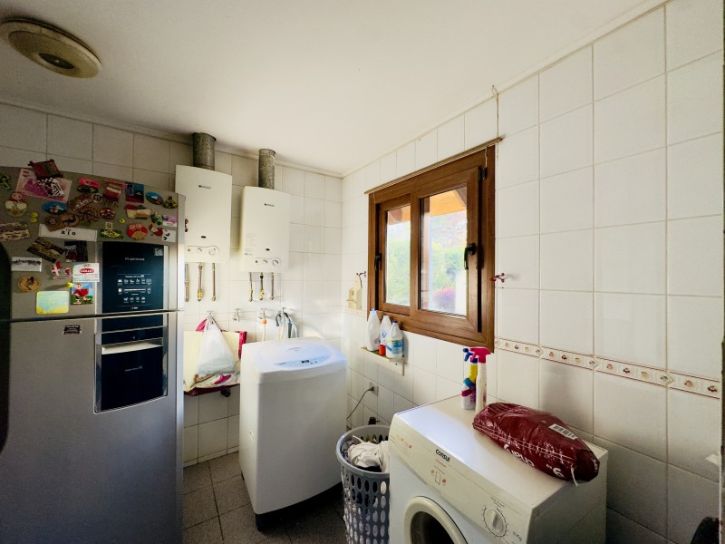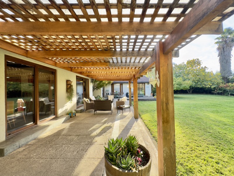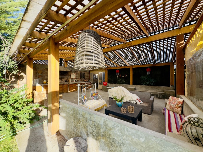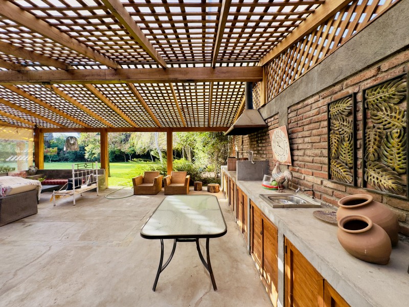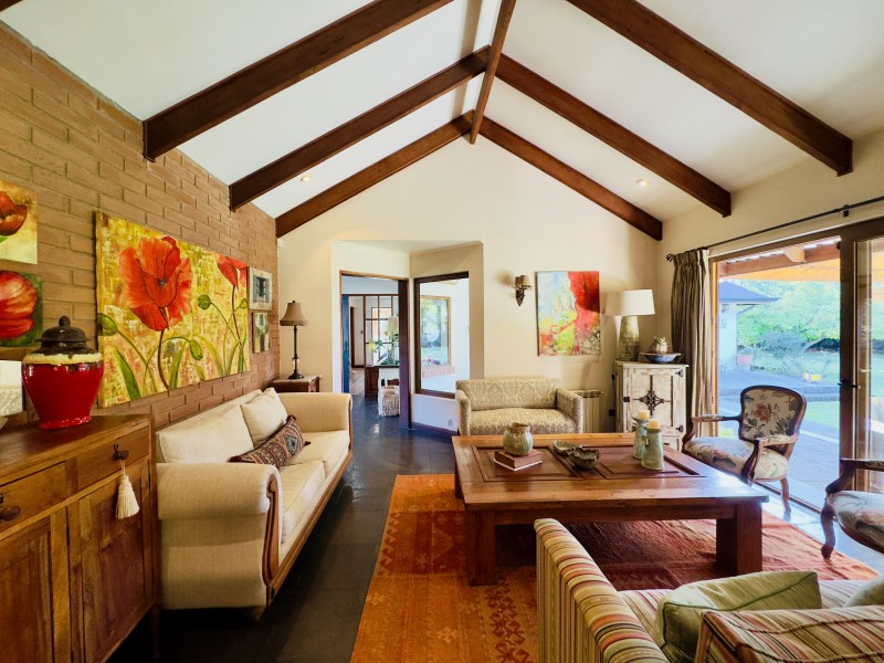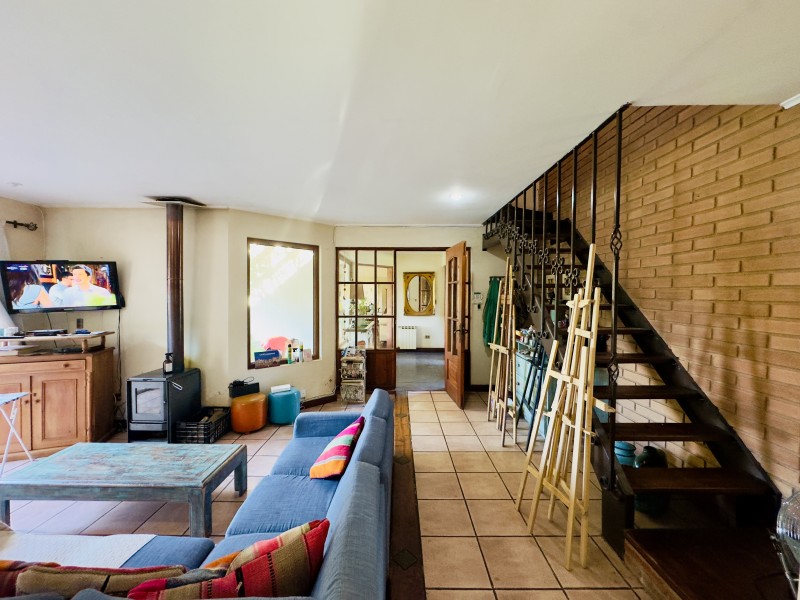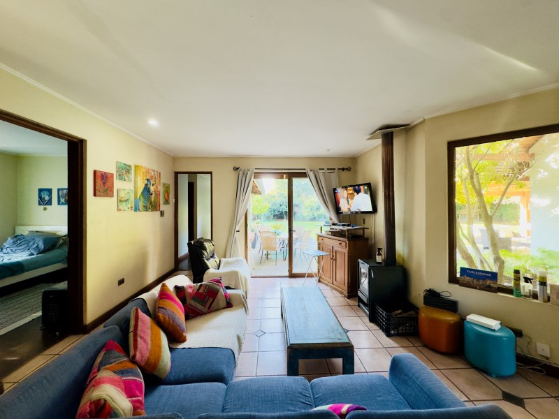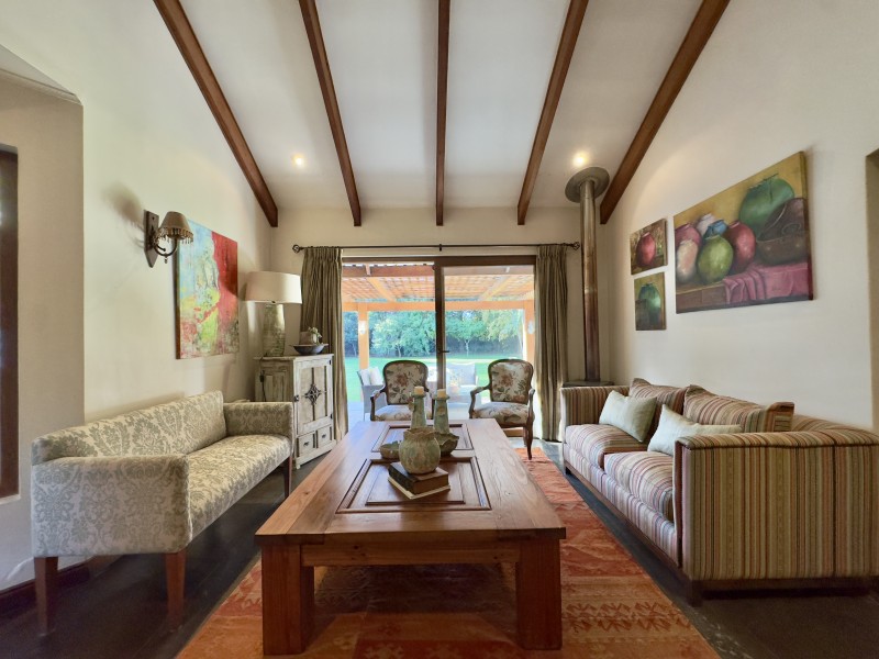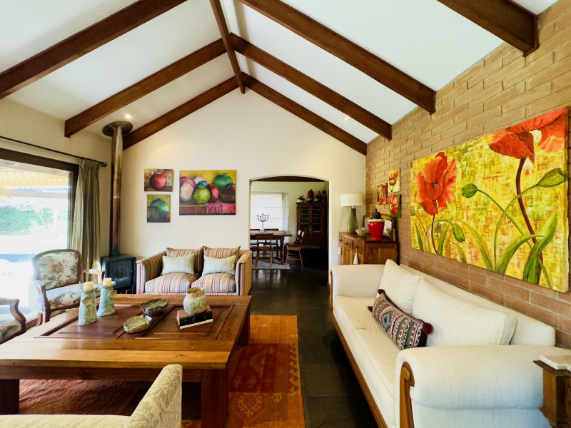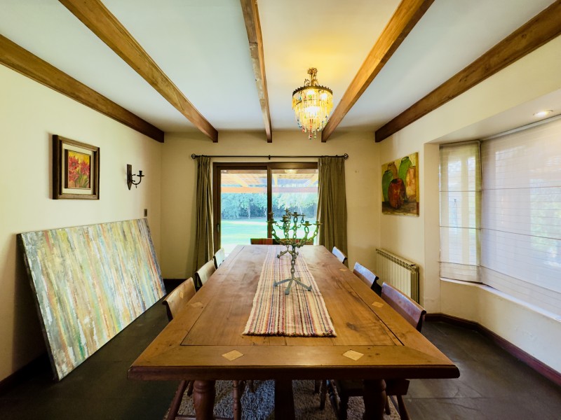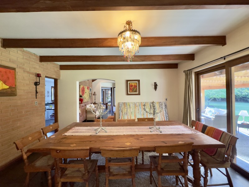 -Amplio y luminoso living comedor con vigas de madera a la vista